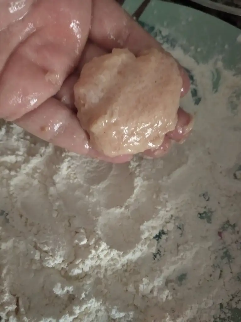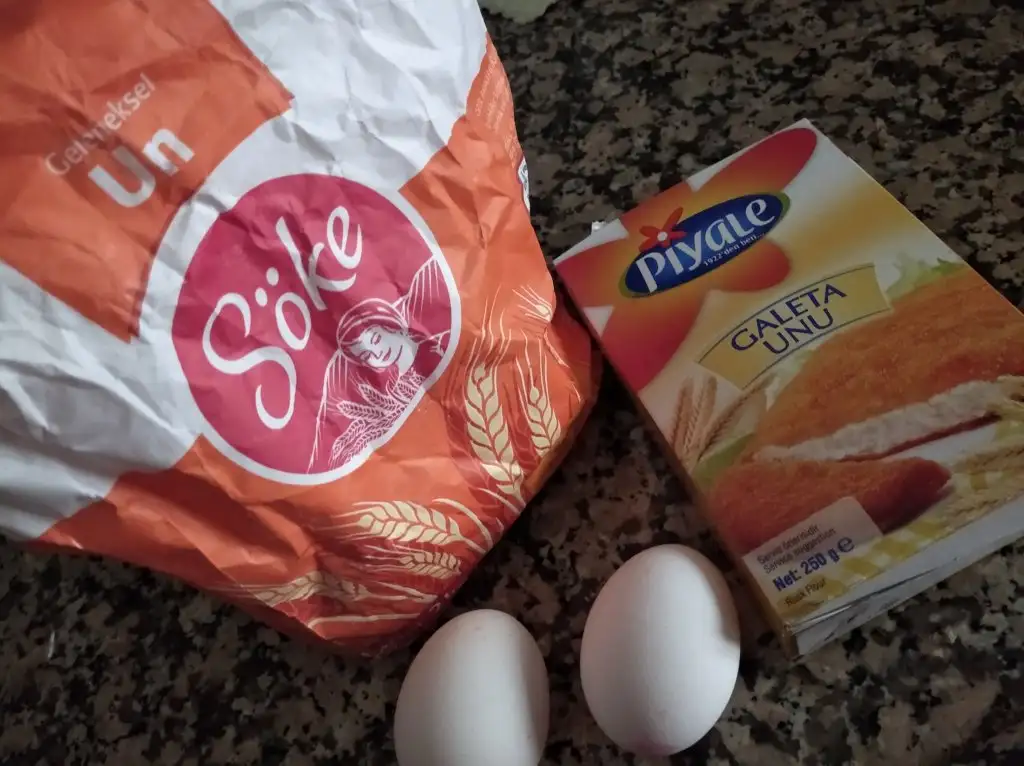 Tavuk yumurta un tuz karabiber ve sarımsak doğrayıcı ya koyulur ve bizt yapılır dinlenmeye bırakılır.Dinlenince eller sıvıyağ la yaglanip istenilen büyüklükte alınır sırası ile un yumurta galeta ununa bulayıp kızartılır.