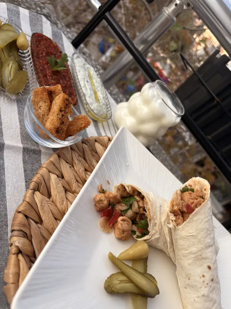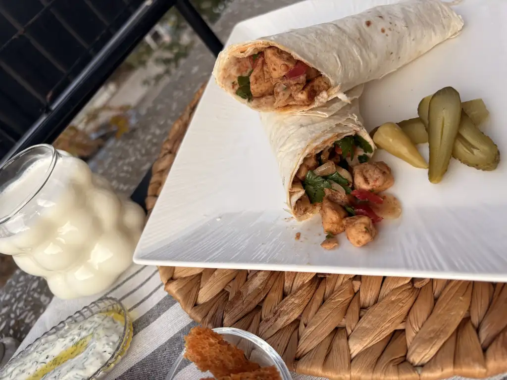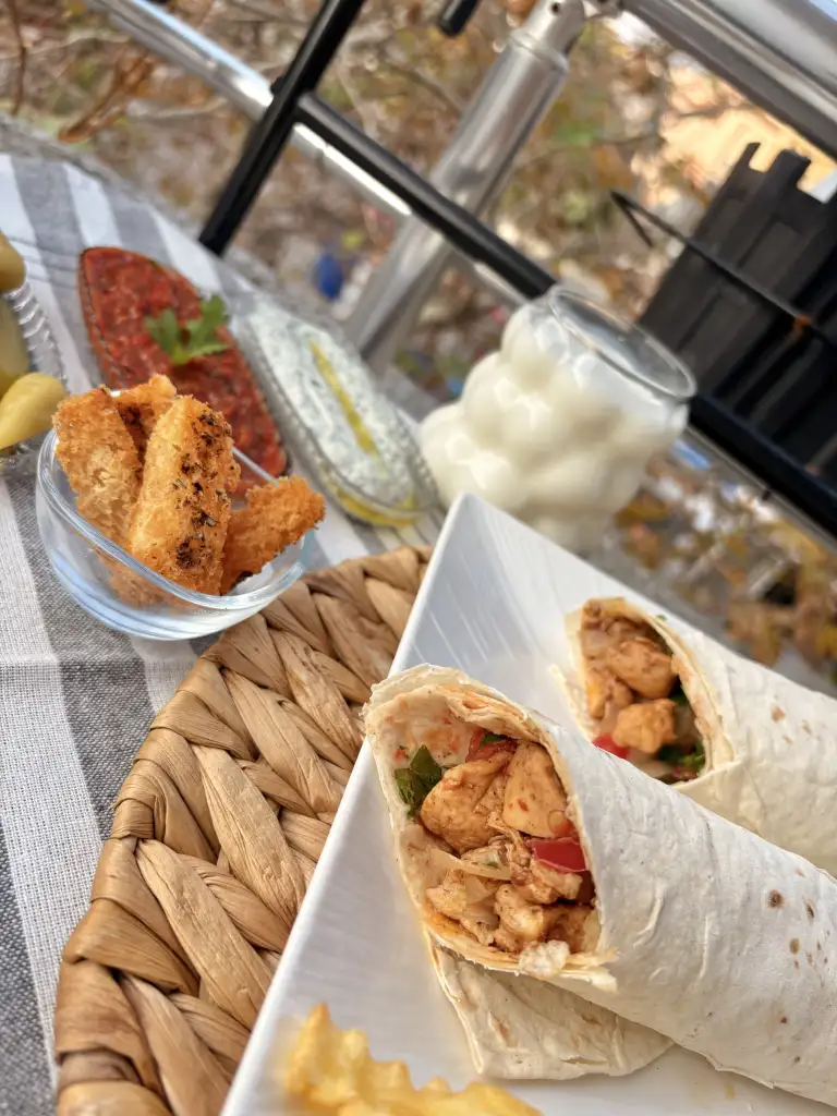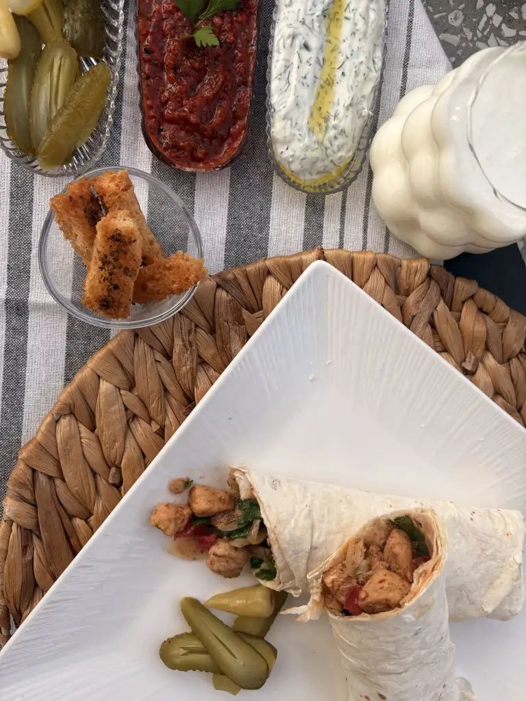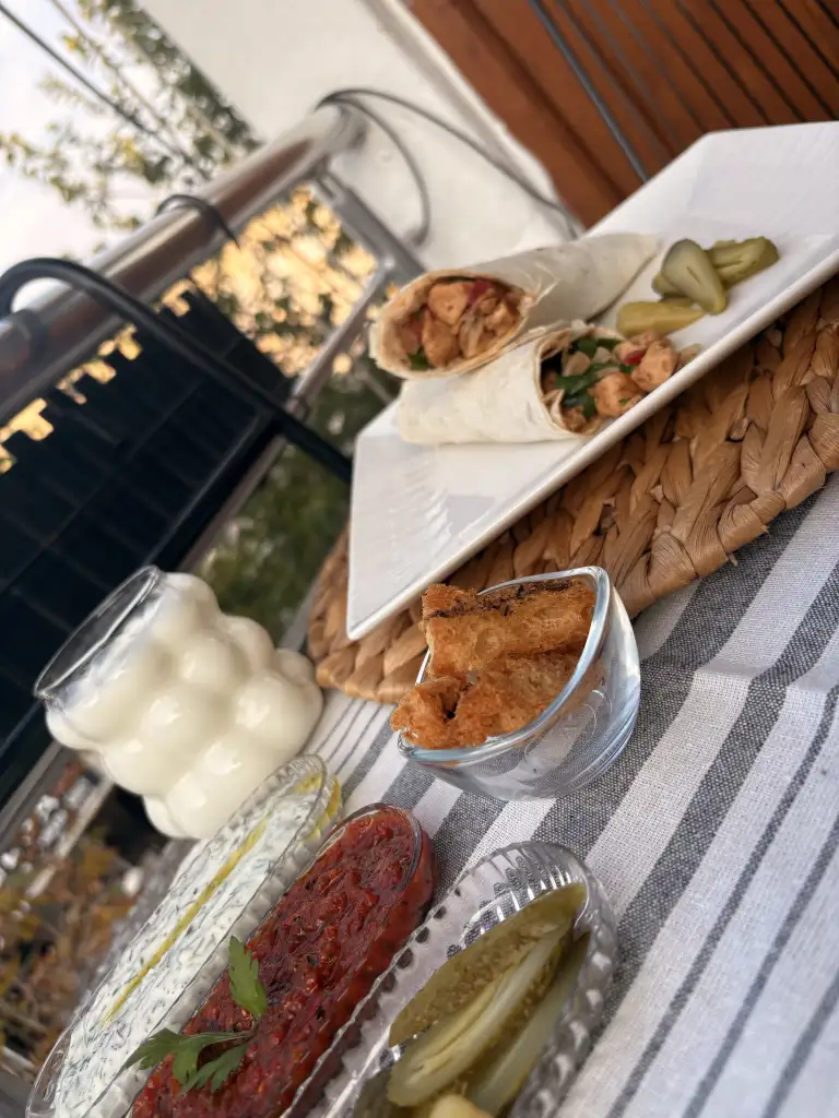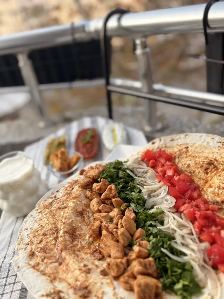 Soğanları ince ince piyazlık doğrayıp tuz ve sumakla ovuyoruz. Maydonozları,domatesleri doğruyoruz ve lavaşımızı tavuğumuzun baharatlı sosuyla buluşturup tüm malzemelerimizi birleştirip sarıyoruz.