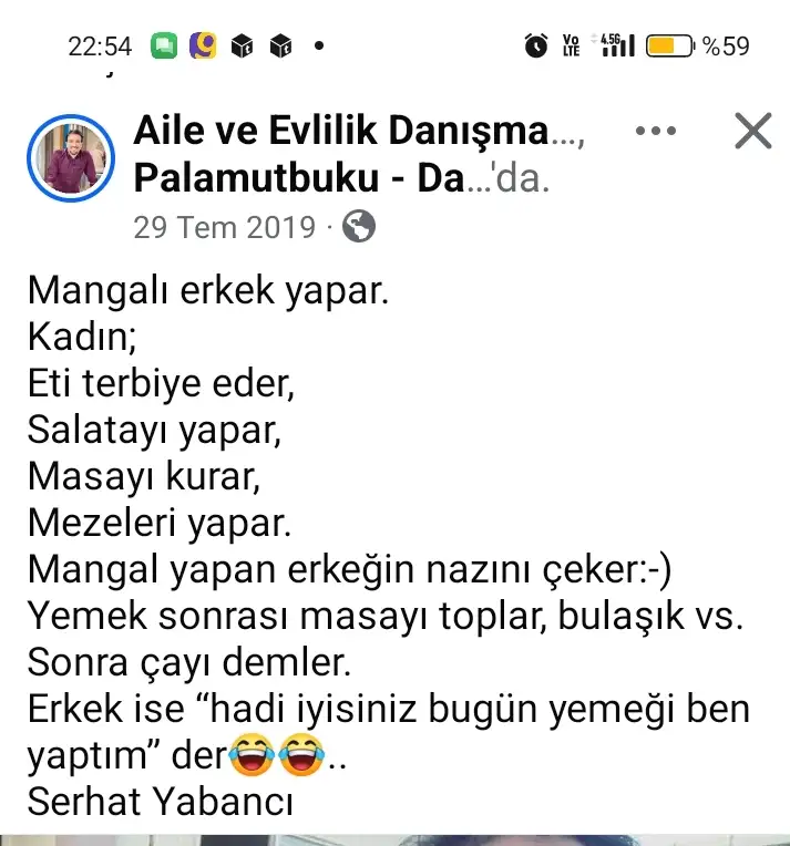 Bahçede soba var üzerinde patates,biber kızartır.Büyük leğende etli yemekler yapar.Hakkını yemeyeyim