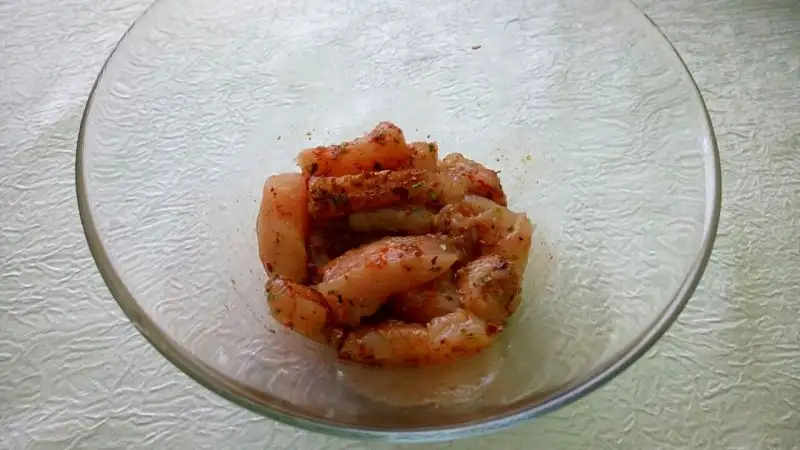 baharatlar ve 2 y.k. zeytinyağıyla karıştırıyoruz. Bu kenarda bekleyecek iyice içine çeksin tüm lezzetini.