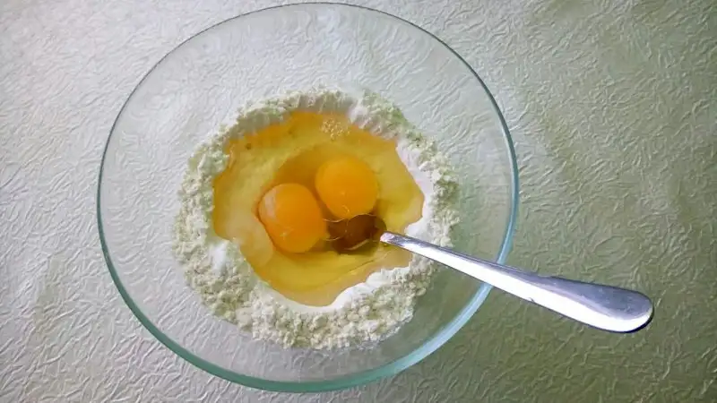 - Un, yumurta,tuz,zeytinyağını kabımıza alalım. Unumuzun ortasını çukur yapıp yumurta,yağ,tuz hepsini koyalım. Çatalla birbirine yedirelim. Sonra elimizle yoğuracağız.