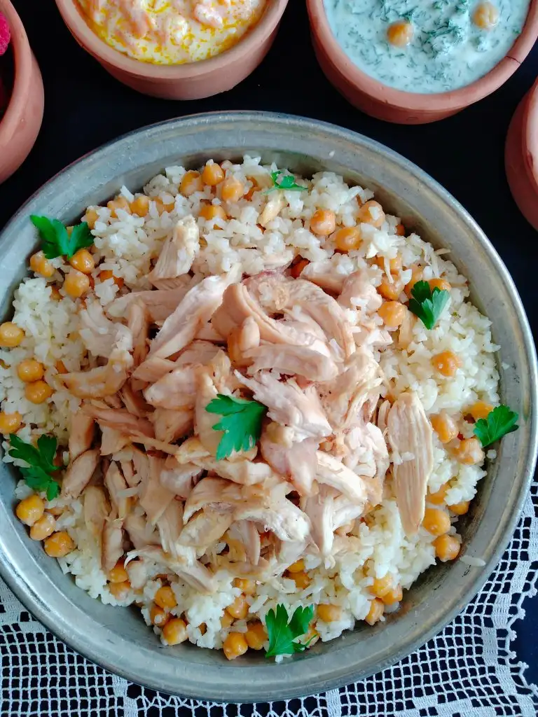 ️Bugün pirinç pilavı ile karşınızdayım . İçinde tavuk ve nohut olan sokak pilavı ile hatırlanan tarifi vereceğim.