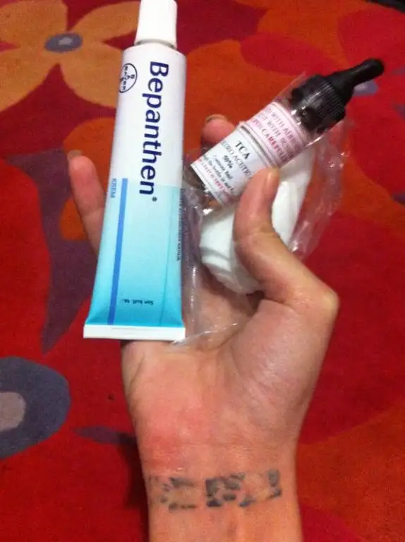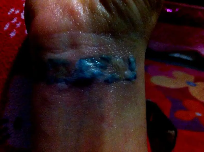 Şimdi dövme olmayan bölgeler kırmızı oldu. (Hassas deri yandığı için büyük ihtimal) dövme olan yerler üstü kabuk bağlamış gibi.
