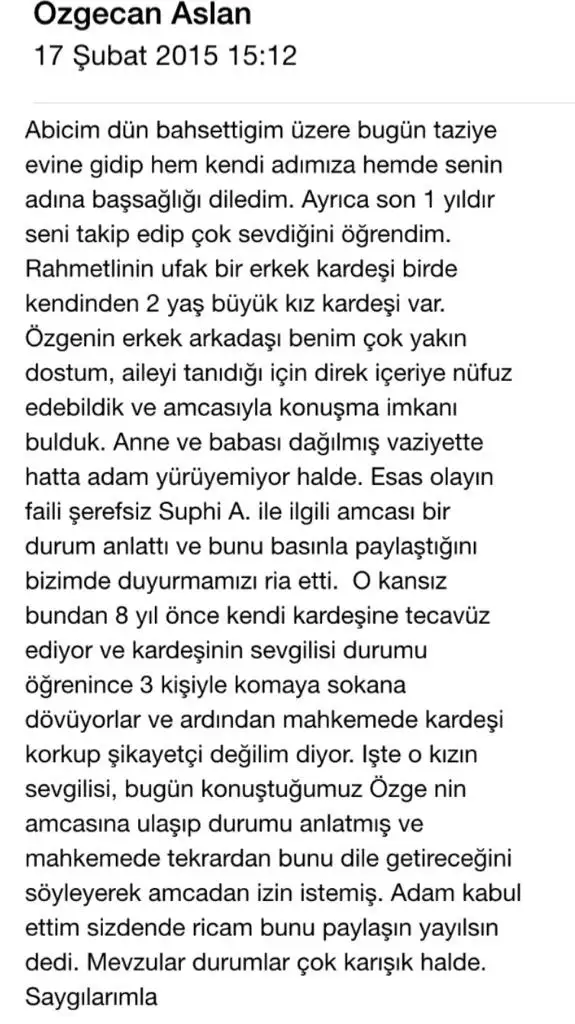 bu arada başlık sürekli gözüme takılıyor, özgecan tecavüze uğramadı ki, yanlış mı biliyorum