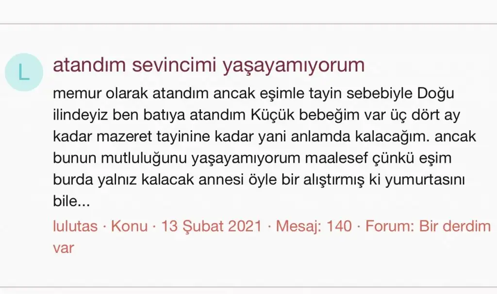 Öyle aman aman öğrenci bana söyledi hemen polise diye bir adım uygulanmıyor polis de çime getiriyor zaten ya da çimden uzmanları çağırıyor. Madem tehdit edildiniz bu da çok basit savcılığa şikayette bulunup (hani karakolda tehdit edildiğinizi söylüyorsunuz ya) her yerde kamera var. Bulunduğunuz karakolda da yapabilirdiniz dediğimi haliyle de tehditten mazeret tayini isteyebilirdiniz. Yıllarca doğuda çalışmış biri olarak söylüyorum hiç de bahsi geçen insanlarla bire birde karşılaşmadım. ‘Bizi rezil etti’ mantığında bile olsalar bunu toplum içinde bağıra çağıra yansıtmazlar. Daha da rezil olacaklarını düşünürler çünkü. Ayrıca idareye haber vermeden tutanak nasıl tutuyorsunuz tek sizin imzanızla o tutanak resmiyet de kazanmaz