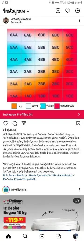 Canım öncelikle rabbim yolunu kolaylaştırsin tüp bebek zaten maddi manevi zor sürecken pgt sahada zorluyor bu yüzden kalitesine bakma pgtden sağlıklı geldiyse önce o embriyona şans ver derim çünkü embriyoda kalite aranmaz genetiği temiz olması yeterli içini rahat tut benim embriyolarimin kalitesini doktor söylemedi bilmene gerek yok onlar hem NGS hem pgtden temiz geldi bu bize yeter dedi sonra ben gizlice kağıda baktım 3bc idiBu fotoğrafa göre 2aa ve 4bc nin tutunma ihtimali aynı yani düşük. Ne yapsam acaba transfere gitmeyip başka bir yerde tedaviye baştan mı başlasam? Ama her şey çok da masraflı bir yandan