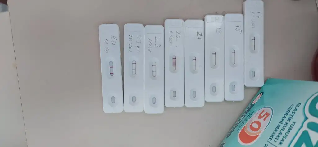 LH hormonu vücuttan tam atılmadıysa hafif koyuluk devam edebilir. Bide sıvı oranı da testi çok etkiler.