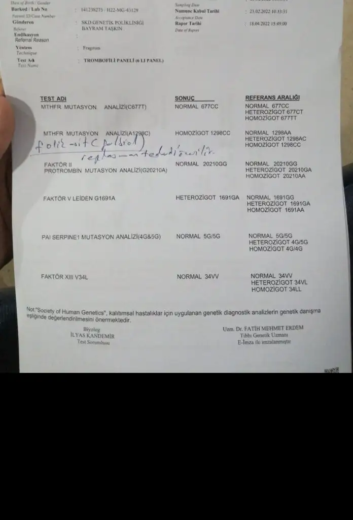 Anladım canım, benimde attığım şekilde çıkmıştı test sonucum.. coraspirin ve iğne kullanman lazım dedi doktor banaMerhaba evet pai1 4g/4g homozigot bir gende var