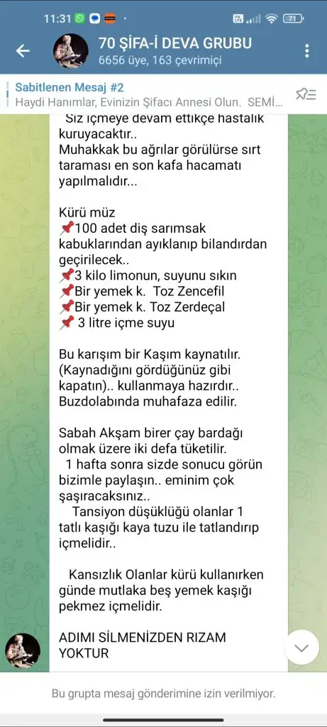 Evet denebilir faydalı bilgiler teşekkür ederimya bilmiyorum inanır mısın, bitkisel yöntemleri dener misiniz ama bunu takip ettiğim genel olarak kürlerini denediğim bir sayfadan aldım. malzemelerin hepsi kan sulandırıcı ve kullanılması tavsiye edilen yiyecekler. yarın bunu yapıp deneyeceğim bir hafta kullanacağım. kullanmak isterseniz size de atıyorum. telegram sayfaları var, Instagram da var ama adını hatırlamıyorum.