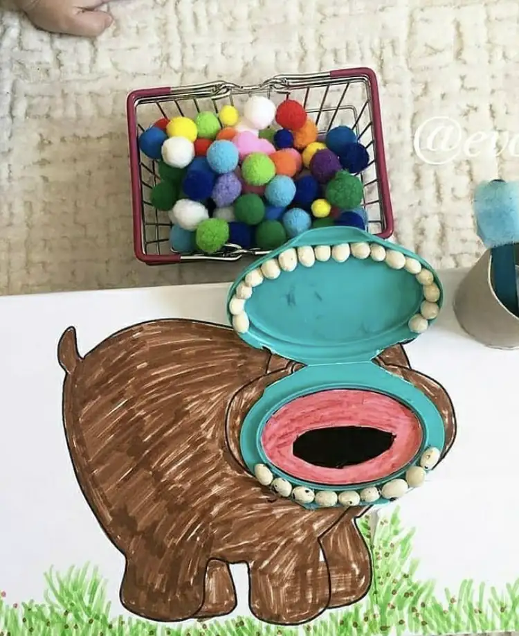Birde böyle birşey gördüm çok tatlı diş fırçalamada öğretiliyor üstünde ayakkabı kutusuna yapmıslar dişlerde fasülye