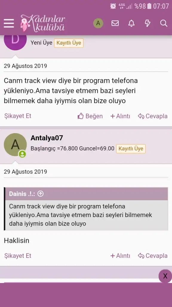 Bir süredir esimin telefonuna su takip prog. indirmek istiyordum Sonunda dedigimi yaptim Zaten 7 gun deneme suresi vardi Bugun 5. gündü Gercekten hic yanlis hareketi yoktu Evlilik yildonumumuz oldugu icinde dun bir siteden hediye yollamistim Cok mutlu olmustu Hersey cok guzeldi Hatta bugun dedimki hersey yolunda allah verede 2 gunde bisey gormesem duymasam diye...