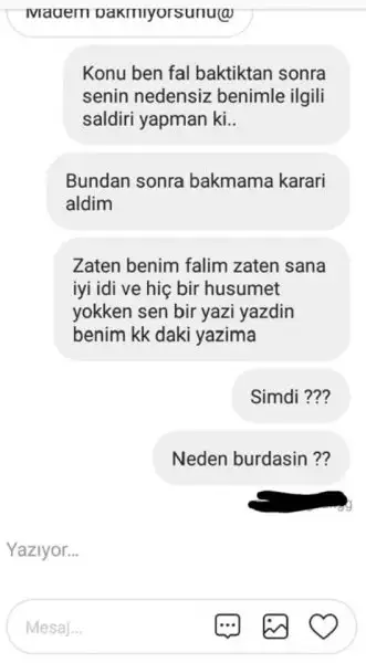 ve kendisi benim instagram sayfama gelip beni takip edip dm den bana ulaştığı ve fal talebinde bulunduğu için benimde açıklamam bu oldu ( asagıda) , -AÇIKLAMALARIN TAMAMI -KIRPMADAN- şimdi sizlerin huzuruna bu mesajı bırakıyorum arkadaşın ismini ve twelve de kullandığı rumuzun üstünü silerek sadece .Asagıdaki konuşmanın tanımını size brakıyorum .