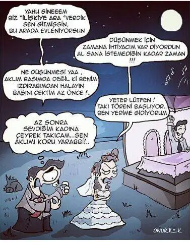 Evet, hepsinin maddi sorunu var, hepsinin ailesiyle ilgili sorunu var, (bizim hayatımız toz pembe ya) aslında biz hayatının kadınıyız ama duygularını belli eden biri değil, içine kapanık , oturmuş bir köşede kara kara düşünüyor, biraz sabretmemiz gerekiyor, sıcak ve anlayışlı olmamız gerekiyor v.s v.s 2 veya 3 ay içinde her şey yoluna girecek, bu insanlar kaderimiz, ruh ikizimiz, ha birde şu vardı; hayatımıza başka bir erkek girecek şans verelim bu insana ama biz salak olduğumuz için gönlümüzdekini tercih edeceğiz.