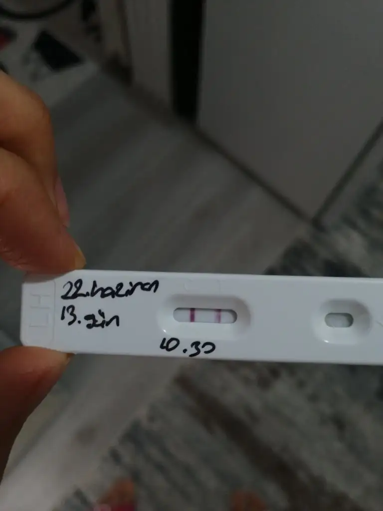Sabah ve şimdi yaptığım test aşağıda çatladı bende bugun ve yarını değerlendirip artık beklemeye koyulacağım senınle aynı gidiyoruz 🤩inşallah güzel haberler alırız