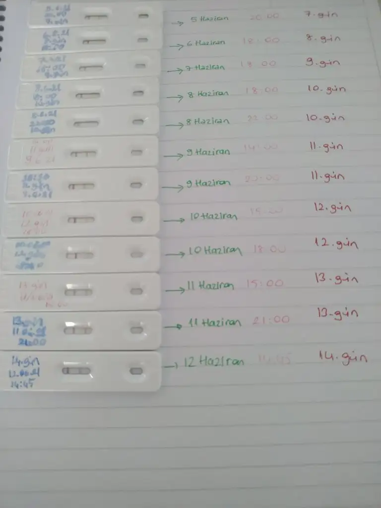 Kuzu o test ilk yaptığım gün t c den daha fazla kopkoyuydu ertesi günler idrar uçtukça silikleştiAaa 13 . Gündeki yumurtlama sayılıyor mu