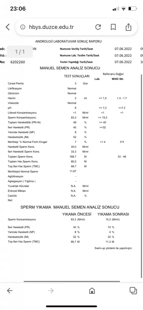 Heh işte süzinki 3 parçalı test sonucu. Ama bilmiyorum benim gözlemledğim çoğu insanın zaten 40 larda değeri ve hamile kalıyolar. İnşallah bizim de böyle olur. Olmazsa ben kasımda gidicem zaten doktora bakalım o zaman aşılama falan yapar belkiBizimkide bu sekilde normal gebelik düşük diyor aşılama daha sansli oluyor demisti yikama sonrasi degerleride önemli bizimki arttigi icin asilama sansi yuksek diyor
