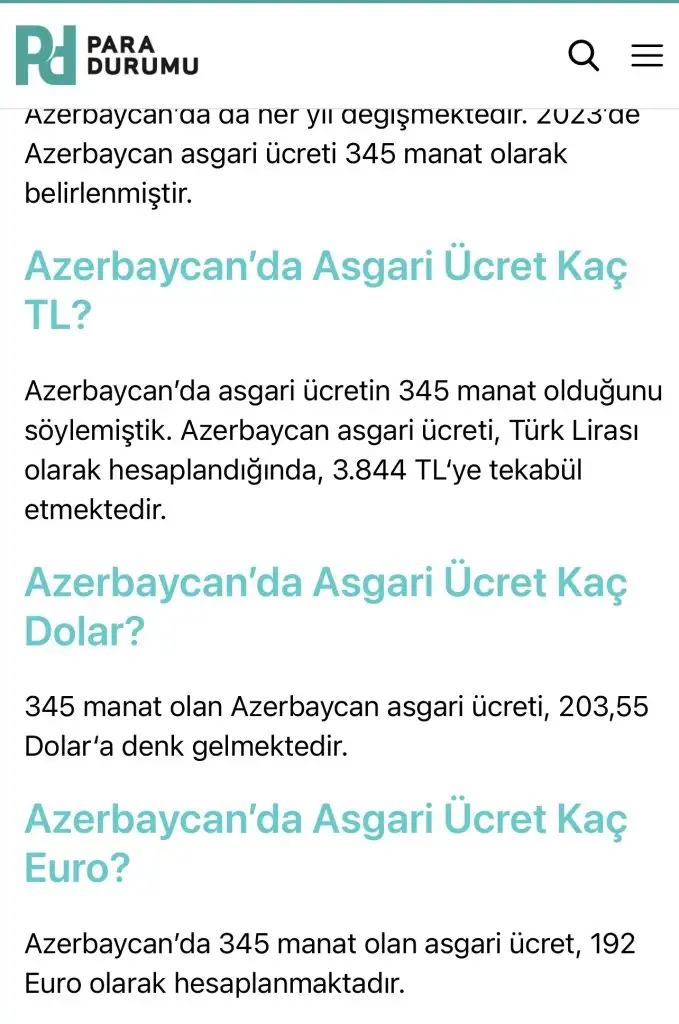 Sizin ülkenizde asgari ücret 345 manatmış. Doğru mu?