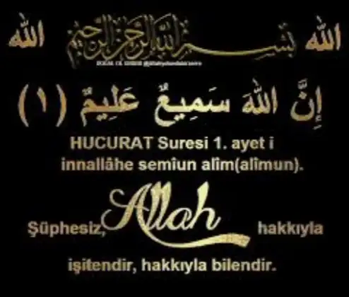Hucurât Suresi 1. Ayet: Yâ eyyuhellezîne âmenû lâ tukaddimû beyne yedeyillâhi ve resûlihî vettekûllâh(vettekûllâhe), innallâhe semîun alîm(alîmun).