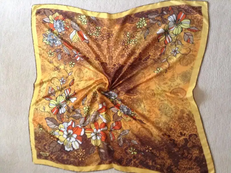 Altın rengi eşarp markasız 10tl ,ama deseni güzel baştada güzel durur