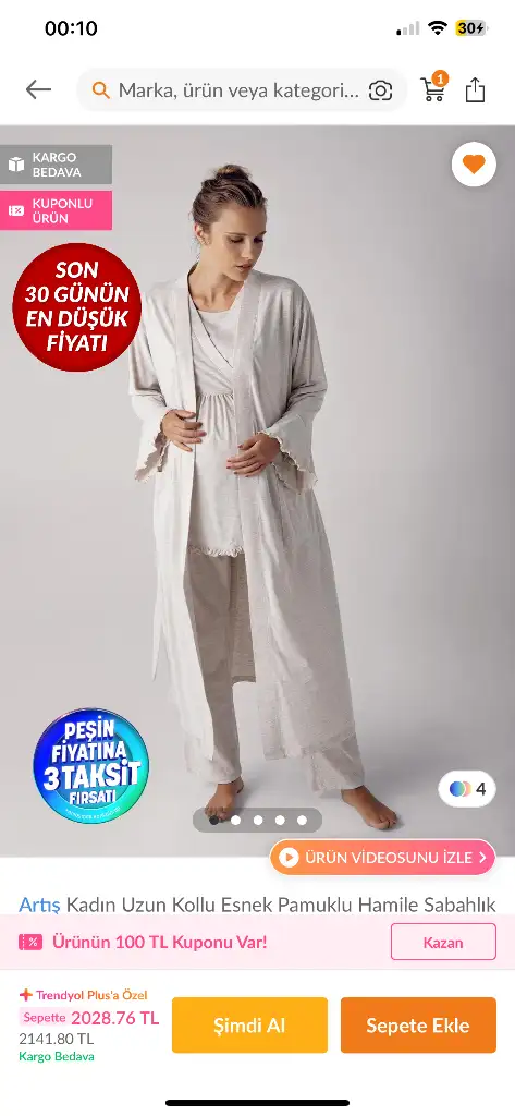Ben benzer bi şey aldım hiç kullanmadım. Bi tane düğmeli pijamam vardı onu kullandım.