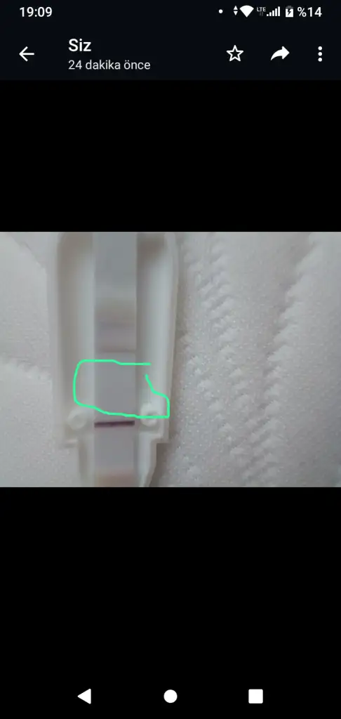 Merhabalar son adet tarihim 8 haziran erken gebelik testi yaptım silik bir çizgi çıktı 5 dakika içerisinde ben görebiliyorum ama fotoğrafta çok dikkatli bakınca görünüyor bakabilir misiniz lütfen 🙏🌸