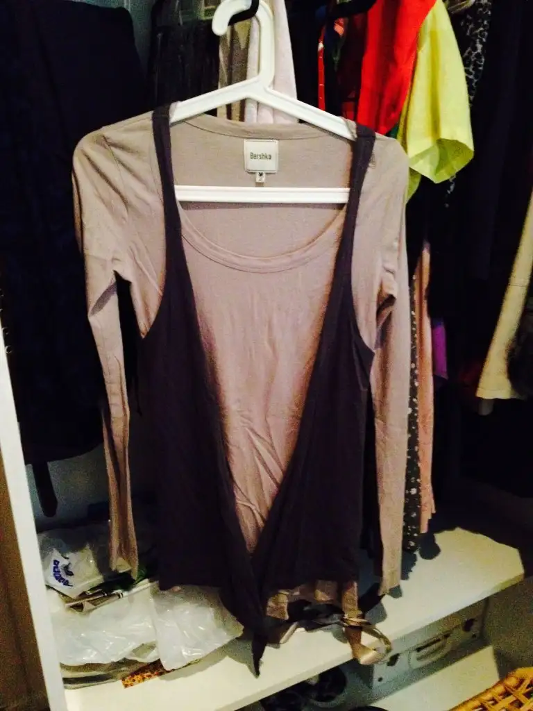 4. Medium beden, bershka. yelek ve bluz tek parca, birbirine dikisli. 5 tl.