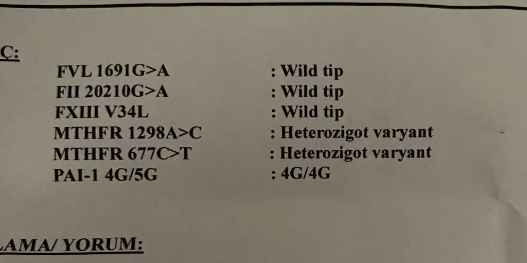 Kızlar günaydın. Pıhtılaşma testi yaptırmıştım sonucumun bi tanesi çıkmış bi bakar mısınız fikri olan var mı daha rapor halinde almadım hepsi çıkmadı