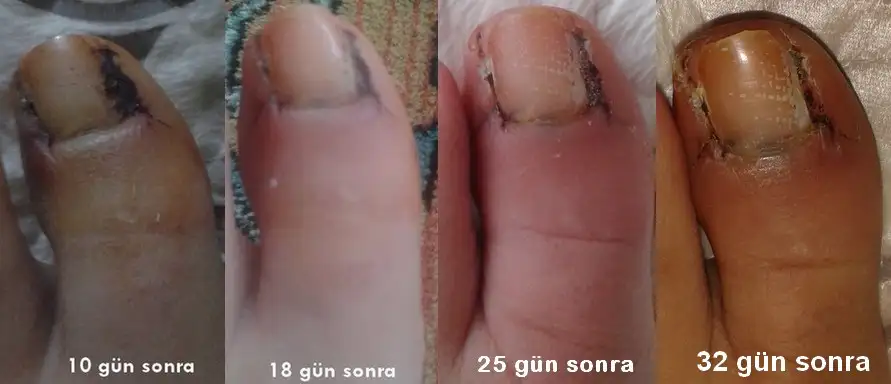 Neyse en sonunda ayağımın yanından minik bi et fırladı. Buna "granül" doku diyorlar. Bu doku çıktığında artık 3. aşama oluyormuş ve cerrahi müdahale gerekiyor. Sonra Allah korusun, iltihap kemiğe sıçrayıp kangrene bile çevirebiliyor. Böyle küçük bir sorun gibi ama ilerlemeden doktora gitmekte fayda var. Bende ne yapsam ne etsem diye araştırırken Şahin Bey'in sitesini gördüm. Herkes, en kesin çözümün bu ameliyat (tırnak yatağı revizyonu) olduğunu söylemiş. Ameliyatı olanlar memnun vs..