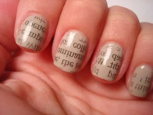 Yapılışına gelince bir bardağa biraz alkol koyuyorsunuz.Gazateden de parmağınız kadar küçük parçalar kesiyorsunuz.Daha sonra tırnaklarınıza açık renk bi oje sürüp kurumasını bekliyorsunuz kuruduktan sonra tırnağınızı alkole batırın ardından kestığiniz küçük gazete kağıtlarını üstüne yapıştırın biraz bekleyin ve yavaşça kağıdı kaldırın.En son üstüne cilanızıda çektiniz mi işlem tamamadır.Umarım beğenirsiniz:) Baskı yapıldıktan sonraki halii de böyle oluyor.