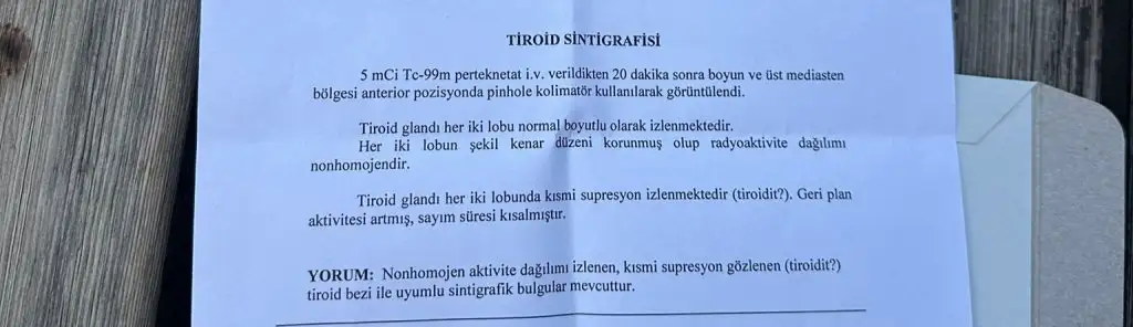 Tiroid üretimi baskılanmış diyor. Hipotiroidisi varsa muhtemelen hashimato çıkacak