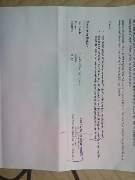 Çok geçmiş olsun.Devlette ultrason çektiler gecen sene eylülde hiçbir şey yok sadece haşimatosun dedidiker