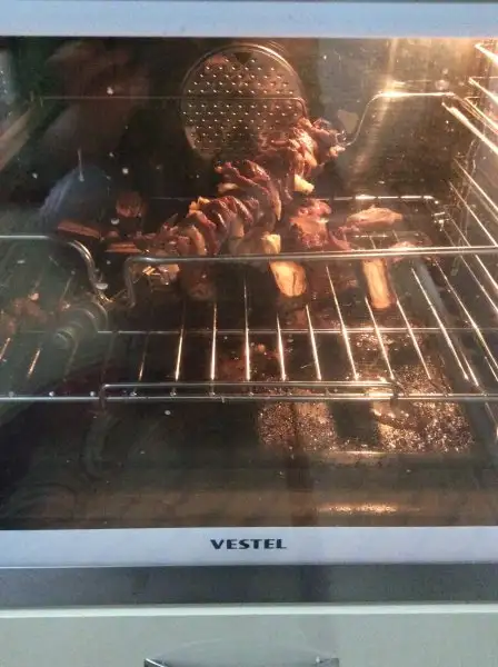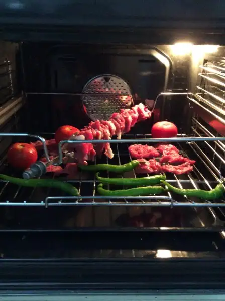 Elleri ve kuyruk yağını şişe diziyoruz fırına patlıcan domates biber sarımsak eşliğinde yerleştiriyoruz.
