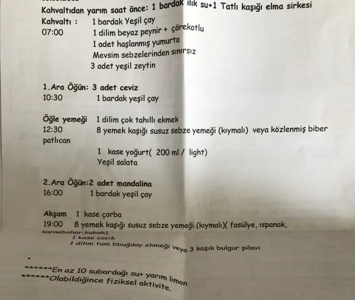 Cok sevinirim ya sorarsan ben cok muallaktayim insülin direncim varken olmuyordu günü gününe adet oluyordum zaten rahatça içiyordum ama su an olma ihtimali var emin olamıyorum biberiye ve yesil cay cok etkiliCanım düşünüyorum ama değilim zaten bu bir haftalık liste önümüzdeki Salı istersen sorarım sen yeşil çayı içme şüphen varsa Canım