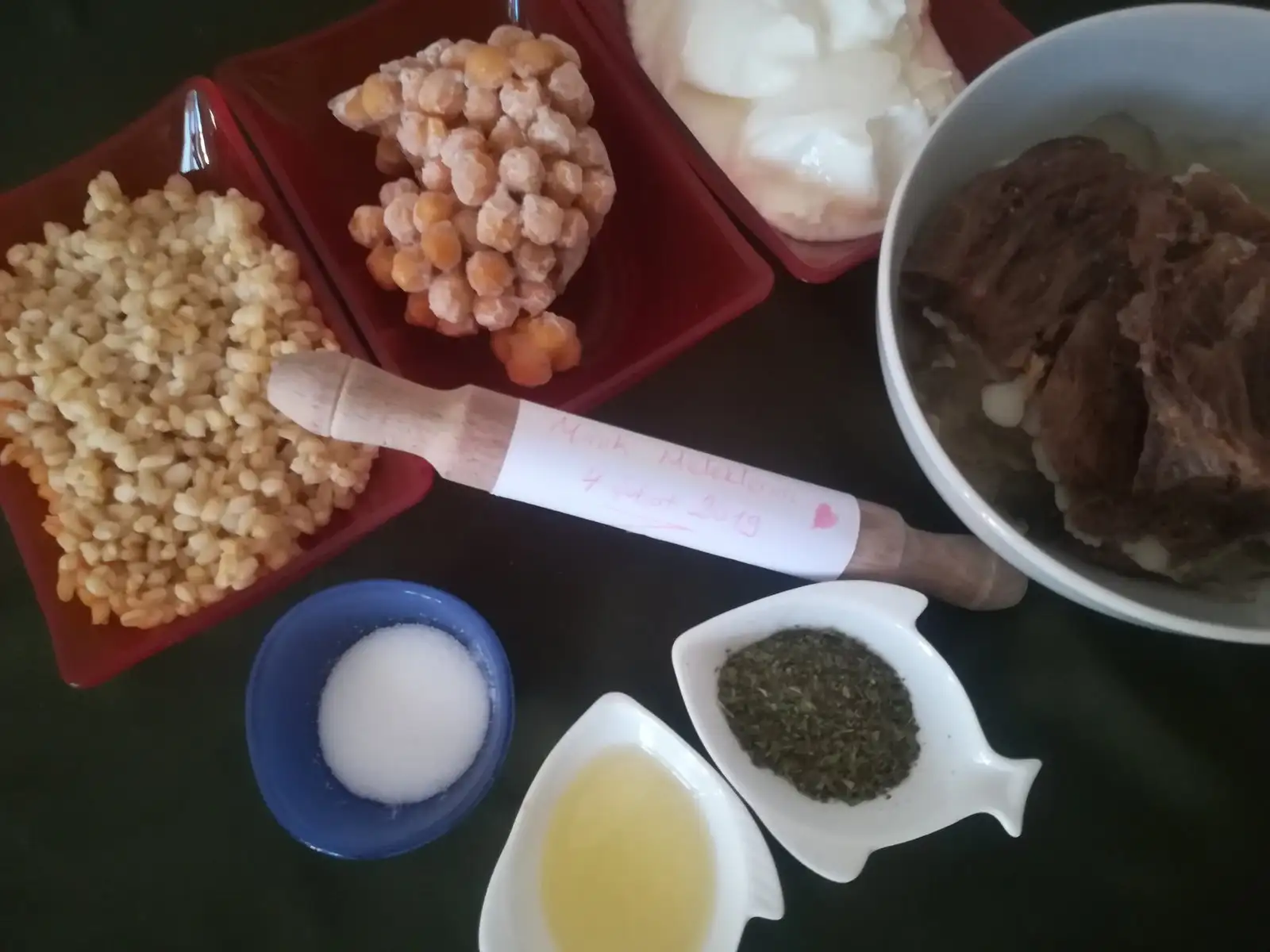 - 1.5 şu bardagi buğday (haşlanmış)