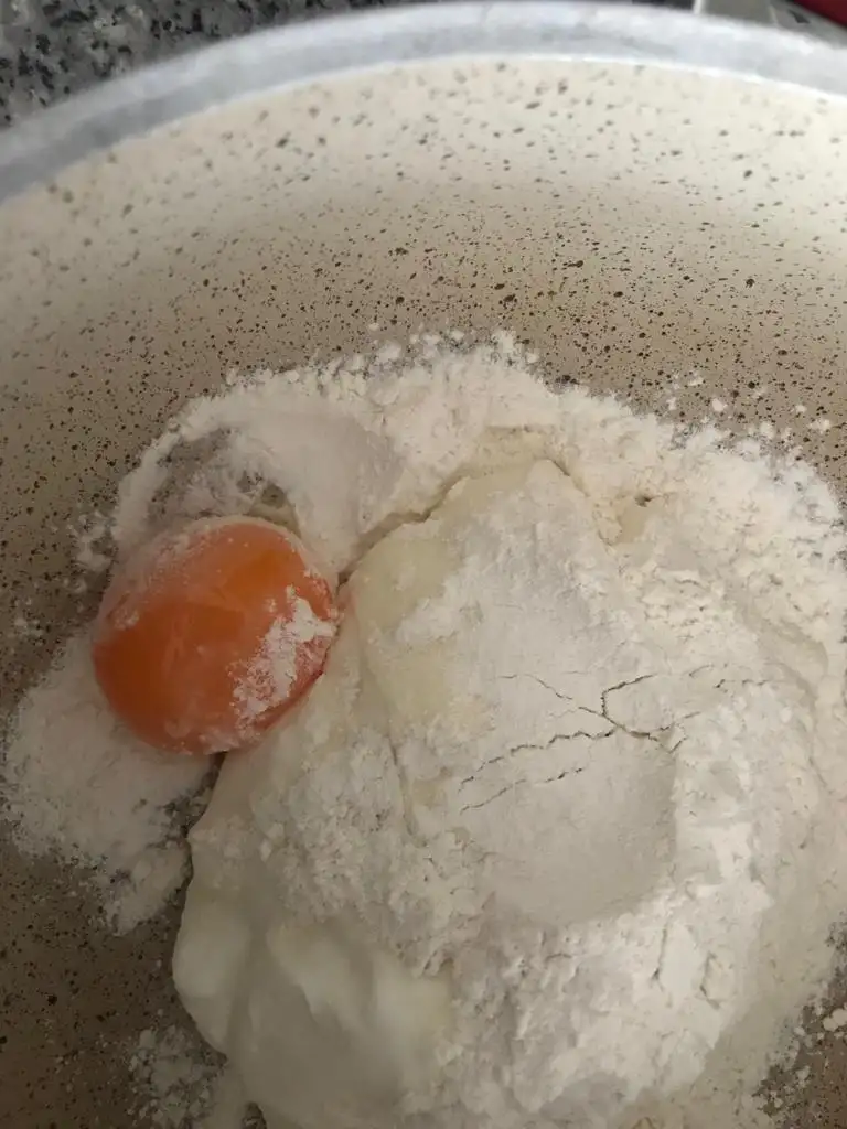 - Tencereye yoğurt, yumurta ve unu koyup birbirine karışana kadar iyice çırpın.