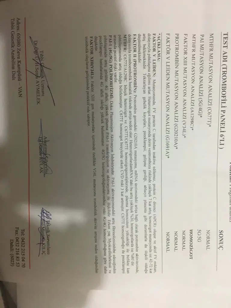 Testiniz normal. Bu sonuçla kan sulandırıcı verilmez. Çok eski drlar öneriyor sadece ama yapılan çalışmalar göstermişki mthfr çoğu kişide homozigot ya da heterozigot ve kan sulandırıcı kullanmanın bir etkisi yok. Danıştığım hematolog ve tüp bebek Dr ları bu şekilde yorumluyor.Bilgisi olan yardımcı olabilirmi lütfen bi sorun varmıEki Görüntüle 2551179 Eki Görüntüle 2551179