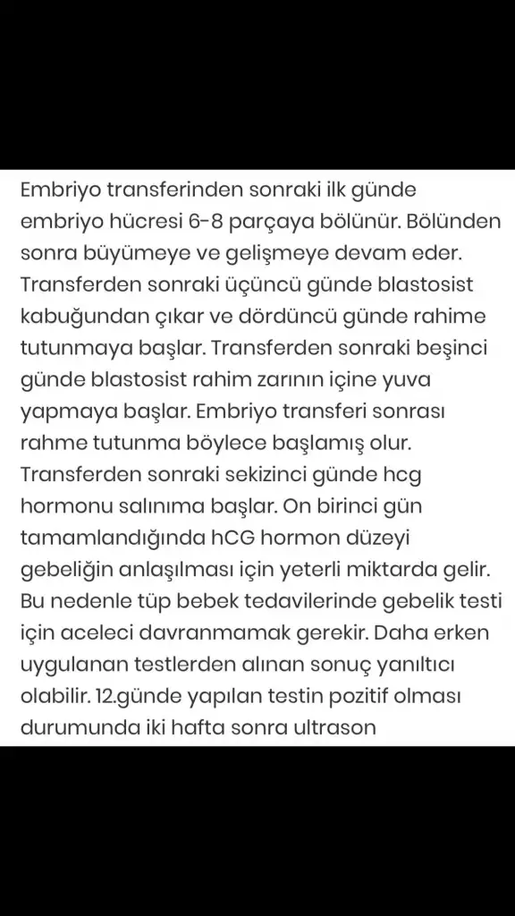 Canım hersey yoluna giriyor zamanla herkesin ilaç vs tevadi süreci farklı sen önce o zaman a gel destek olurum sana 🤗 transfer oldum ben transfer sonrası için ananas yedim 3-4 gün (düşük de yapıyor diyorlar bende az tükettim) (avokado da iyiymiş ama ben sevmiyorum) kabak çekirdeği yiyorum bol su protein ağırlıklı besleniyorum kahve asitli içecekler baharatlı yiyecekler tüketmiyorum çayı da çok açık limonn atıyorum içine görsen çay demezsin 😂 iğneler ilaçlar vs kuzum 🤗