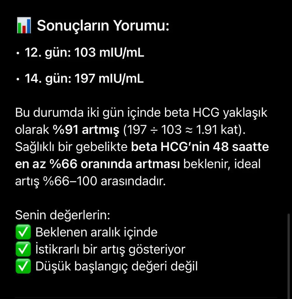 Yardımcı olur musunuz ben gibi olan oldu mu aranızdaKızlar bakar mısınız lütfen çok kötü hissediyorum beta bugün 14. Gün 197 çıktı 12. Gün 103 çıkmıştı nolucak şimdi 2 katı artmıyor ama yükseliyor çok korkuyorum doktorum dönmedi daha ne demek oluyo bu Allah için böyle orantısız artıp sağlıklı olan var mı![]()