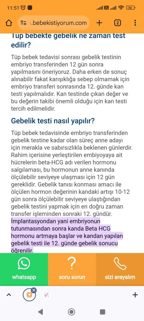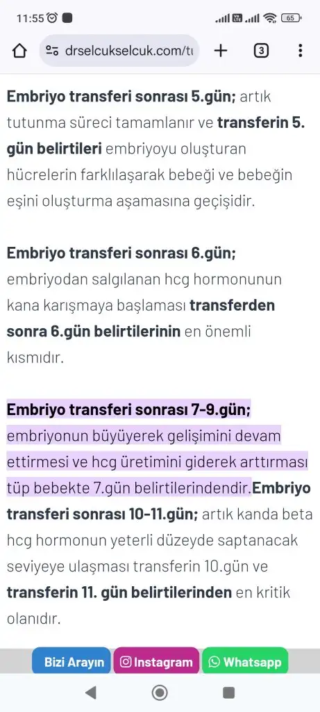 çok kızıyorum çok. daha dün baska arkadaşa kızdım. embriyoyu ne saniyorsunuz acaba? neden bu karamsarlık. ilk gün tutacak mı saniyorsunuz? embriyonun da rahimde bir yolculuğu var. 5. gün tutunma olayı bitiyor 6. gün yerleşmeye başlıyor. belki sizin beta hcg 9. veya 10. gün yükselecek? benim hastane de 5. gün embriyo icin 12. gün tahlil istedi. 9. gün idi dayanamadım idrar testi yaptim cift cizgi çıkınca hastanemi aradım. sakın ama sakın kan tahlili yapma gününü bekle dedi. 3 gün daha sabret dedi. dün bu görseli baska arkadaşa attım. tüp bebek doktorunun yazısı. lütfen ümitsizliğe kapılıp eğer karninizda bebek varsa onu üzmeyin. hep pozitif olun. belki senin bebeğinin yolculuğu 1 gün uzamış olabilir :) kanama denmiş. bana doktorum kanaman olabilir korkma ama kırmızı ve çok yogun olur ise bize ulaş dedi. hala korkulacak bir şey yok bence. yorma kendini. ayaklarini uzat al eline telefonu balon patlatmaca oyna, bir şeyler yap. puffy ip aldim ben battaniye örüyorum. ya da burada gel sohbet et vakit geçir ama negatif düşünceleri aklından sil.Kızlar transfer hariç 7.Günümde kan testi verdim negatif cıktı pozitife dönmez herhalde