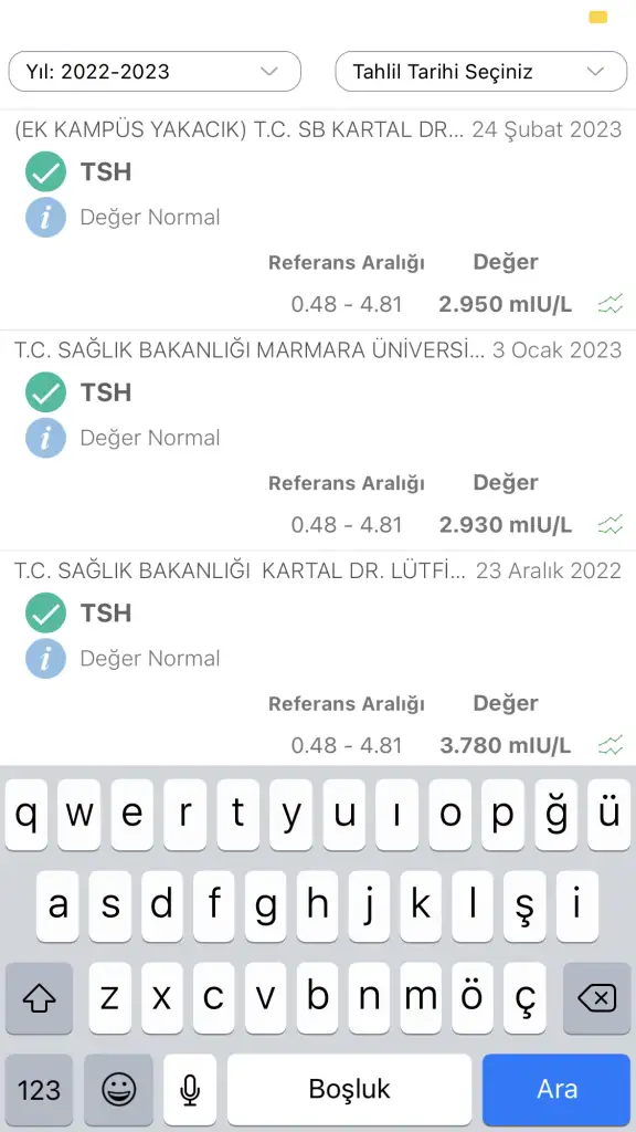 Arkadaşlar merhaba ben aralık ayında dahiliye doktoruna test vermiştim bütün vitaminlerimi içeren gebelikte istediğimi söyledim oda tsh yüksek olmamasına rağmen gebelik olana kadar kullan dedi levotiron 25mg verdi açıkçası normal değerimde diye düşündüğüm için 2 hafta düzenli kullanıp sonra bıraktım bi de sabahları aç karına olduğu için midemi çok ağrıtıyordu. Geçen gün tekrar test verdim bu sefer kadın doğuma değerim biraz düşmüş ben bu hapı kullanmaya devam etmeli miyim boşu boşuna hormon hapı kullanmak istemiyorum değerlerim normal değil mi ? Gebelik için daha mı düşmesi lazım. Doktora randevu aldım gidene kadar size danışmak istedim. Test sonuçlarımı görsele ekledim