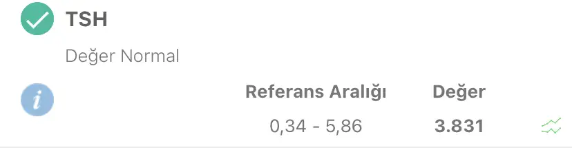 Benimkisi 0,01 yani neredeyse hiç yok ben normalde hipotroidi hastasıyım ilaç kullanıyordum hamile kalınca doktor 75 mg yüksellti düşük yaptım ve 75 mg doktor devam etti buda bana fazla geldi 3 4 ay kullanınca değerlerim çok düşmüş hapı şuan kestim 1 haftalığına doktora gidene kadar haftaya randevum var şimdi bende tedirgin oldum tekrar gebelik istiyorum 2 aydır deniyoruz ama kalamadım bu ayda değerlerden dolayı regl olmadım adet söktürücü verdi şimdi diyorum adet olup hamile kalırsam bu değerle acaba bebeğe yada zekasına sorun açarmı çok gebe kalmak istiyorum ama değerlerden dolayıda çok korkuyorum0,34 ile 5.86 arası normal değer gebelik için 2.5 ideal diyor doktorum.