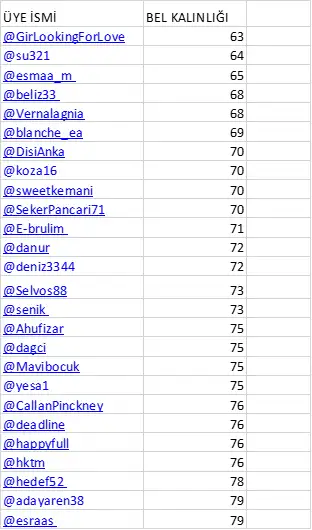sen göbeği ölçmüşsün sanırım :)) tamam değiştirelim,74 olmana sevindim : )))kaptanım benim bel ölçümü güncelleyebilirmiyiz yanlış yerden ölçüm yapıyormuşum 11 cm fark etti 74 olacak ben çok aşağıdan ölçmüşümilk defa belimi ölçüyorumda