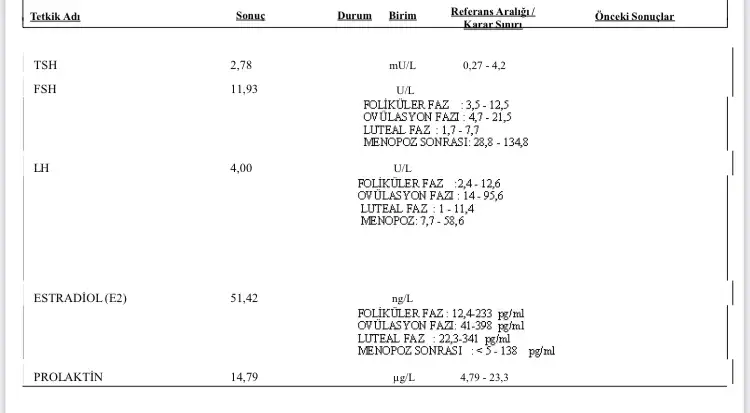 Ben baktırmadım daha onlara. Bilgim de yok maalesef. Allah dermansız dert vermesin. İlaçla tedaviyle hallediliyorsa ne güzel.Bu arada fsh vs diğer hormon testlerinide yaptırdım. Ekliyorum. Bilgisi olan yorumlayabilir. Doktorum daha cvp yazmadı, internetten baktım regl 2. Gün için fsh biraz yüksek sanırım, diğerleri normal gibi anladım. Bu arada amh 1.1 onu 3 hafta evvel baktırmıştım. O da biraz düşük ama fena değil demişti doktor, denemeye devam