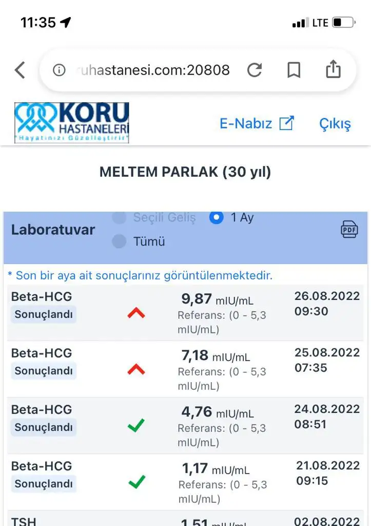 2 gün içinde olmayınca dedim olumsuz herhalde duramadım gittim.21 ağustosta kan testi verdim. beta hcg 1.17 çıktı.
