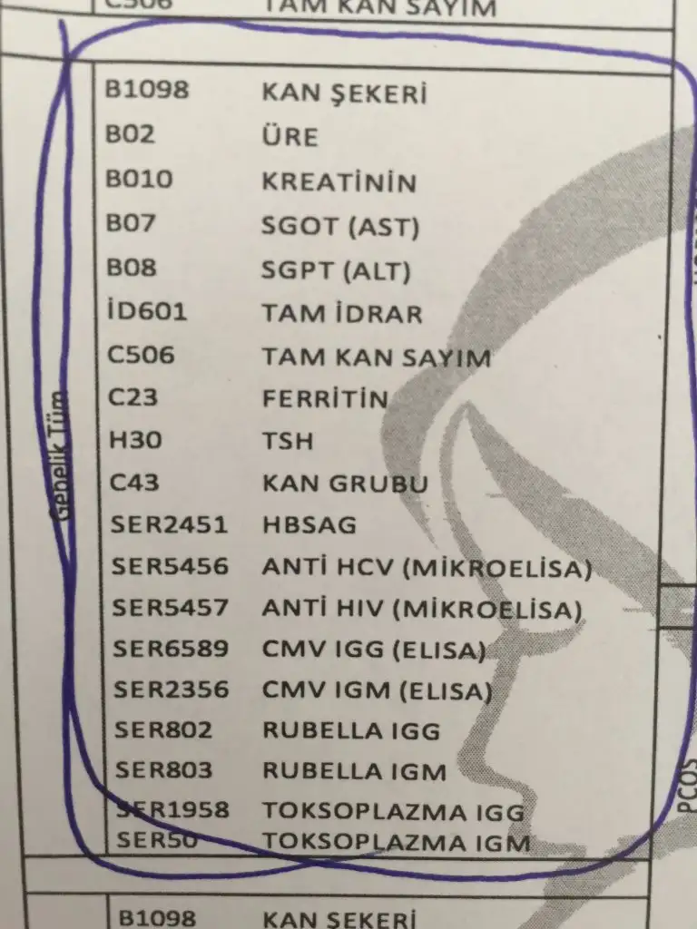 bunları istemiş canım :) devlet de cok hastalık var diye üni hastanesine gidicdm bende