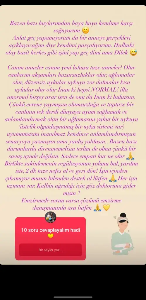 Teşekkür ederim canım insanoğlu çok sabırsız malesef elbette böyle kalmayacak biliyoruz ama yinede yapıyoruz endişeyi1 1mucize1umut canım bak benim emzirme danışmanım şöyle bi yazı paylaşmış, seni rahatlaritması açısından paylaşayım dedim. Eki Görüntüle 2963504