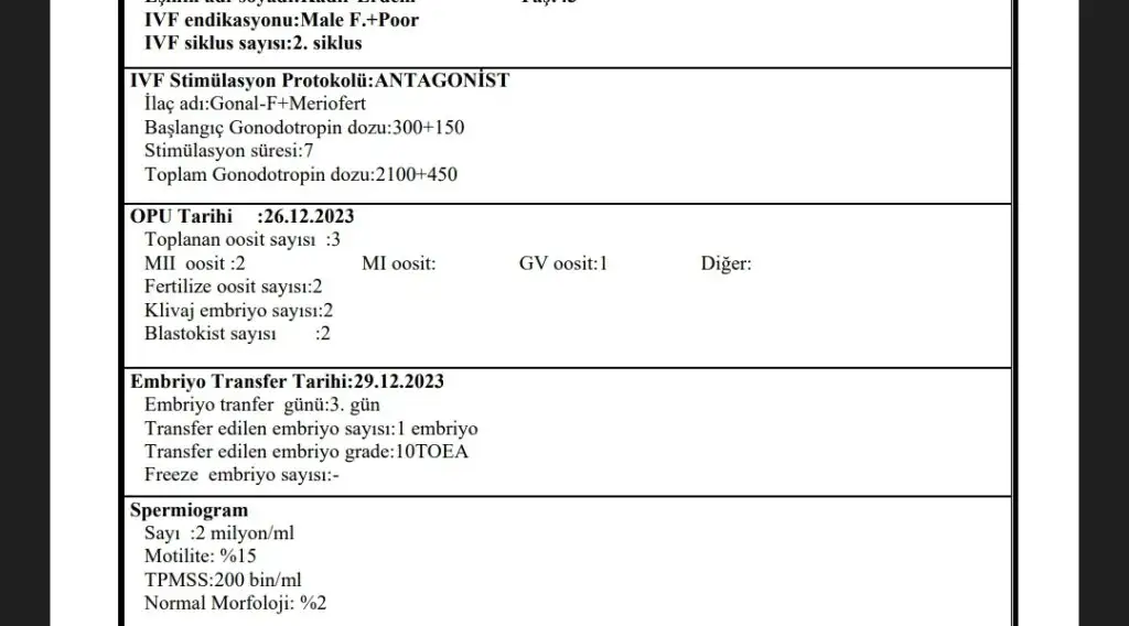 Sadece muayene ücretini en başta verip 6 ay boyunca istediğin kadar muayene hakkımız oluyordu. Bir de yumurta toplama ücreti ve dondurma ücretini ilk baştaki fiyatla 1 kere ödedik. Sonra o işlemler bittiği için embriyomuz da olduğu için sonraki denemelerde sadece transfer ücretini ödedik o da her transferde ücreti artmıştı çünkü biz 1 yıla yaydık geçen sene enflasyondan dolayı hep fiyat artması problemi oluyordu. Ama maalesef iğneler de her aldığımızda artıyordu fiyatı. İğnelere çok fazla para ödedik.