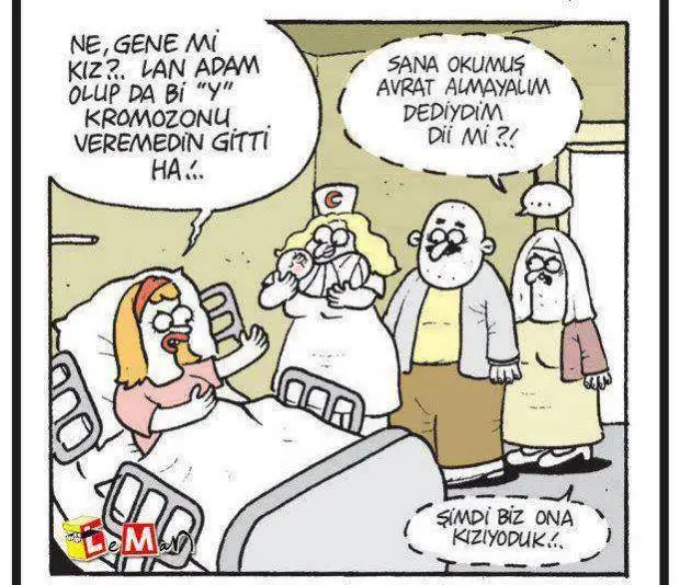 walla ben nasıl insanların içindeyim bilmiyorum ya Allah bana güç versin daha yeni gördüğüm bişeyi sizzle paylaşıyorum.. bebeğimizin cinsiyetini öğrendiğimiz gün görümce gerizekalısının facebooktan paylaştığı karikatürü gönderiyorum.. ya sabır ben bunun intikamını almaz mıyım