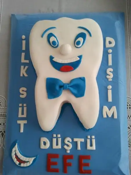 paşamın ilk çıkan süt dişi düştü e tabii teyze boş durmaz hemen bi pasta yapıverdi...
