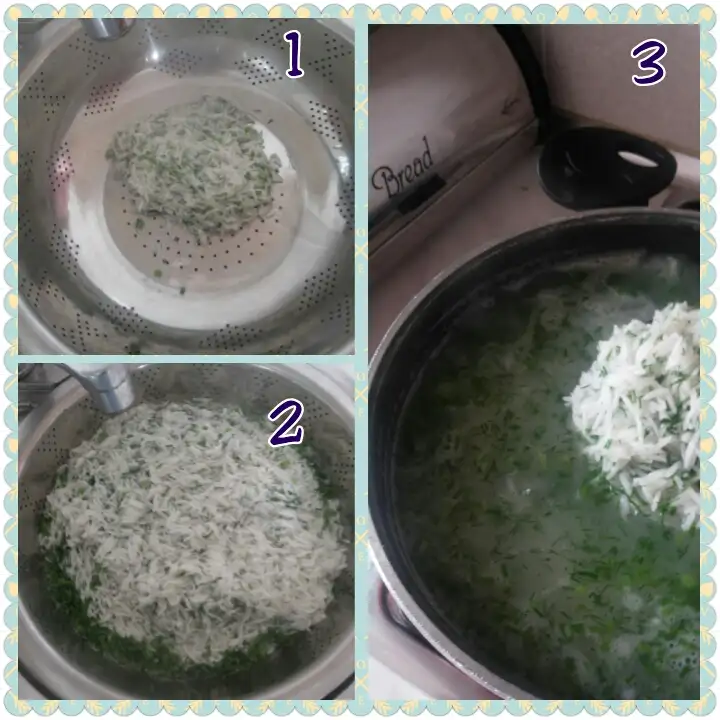 Önceden kaynayan suya 2kaşık tuz atılır ve pirinç ilave edilir.o sırada dereotunu ince ince kıyıyoruz,ve pirinç piştikten sonra dereotunu ilave ediyoruz....Eki Görüntüle 1530584